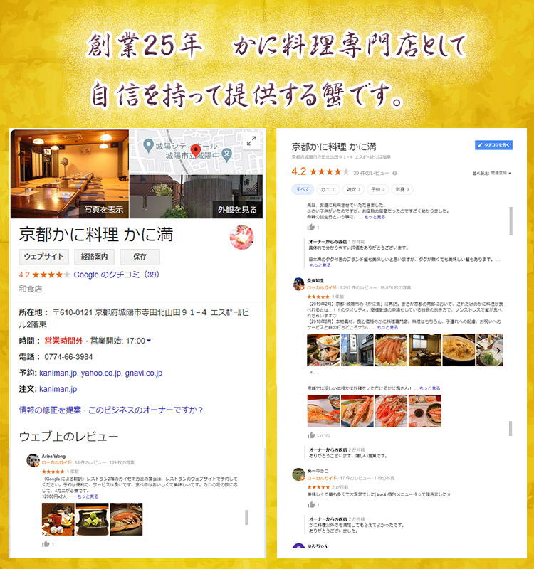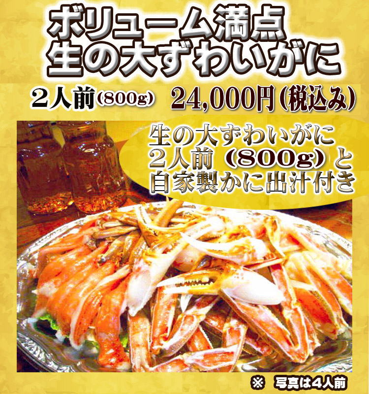 京都 かに料理のかに満は、オホーツク海産おおずわいがにを提供。 貸し切り宴会・個室・法事・新年会・忘年会で送迎無料。城陽のお店です